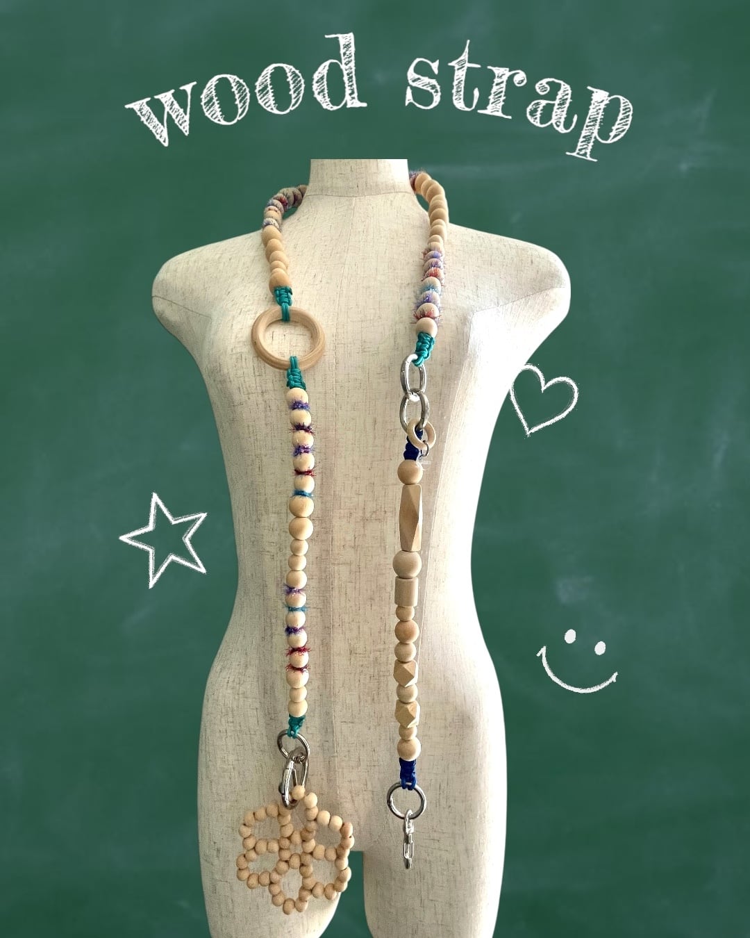 ウッドビーズで作ったお花チャームがワンポイントになって可愛いです(取り外し可能)