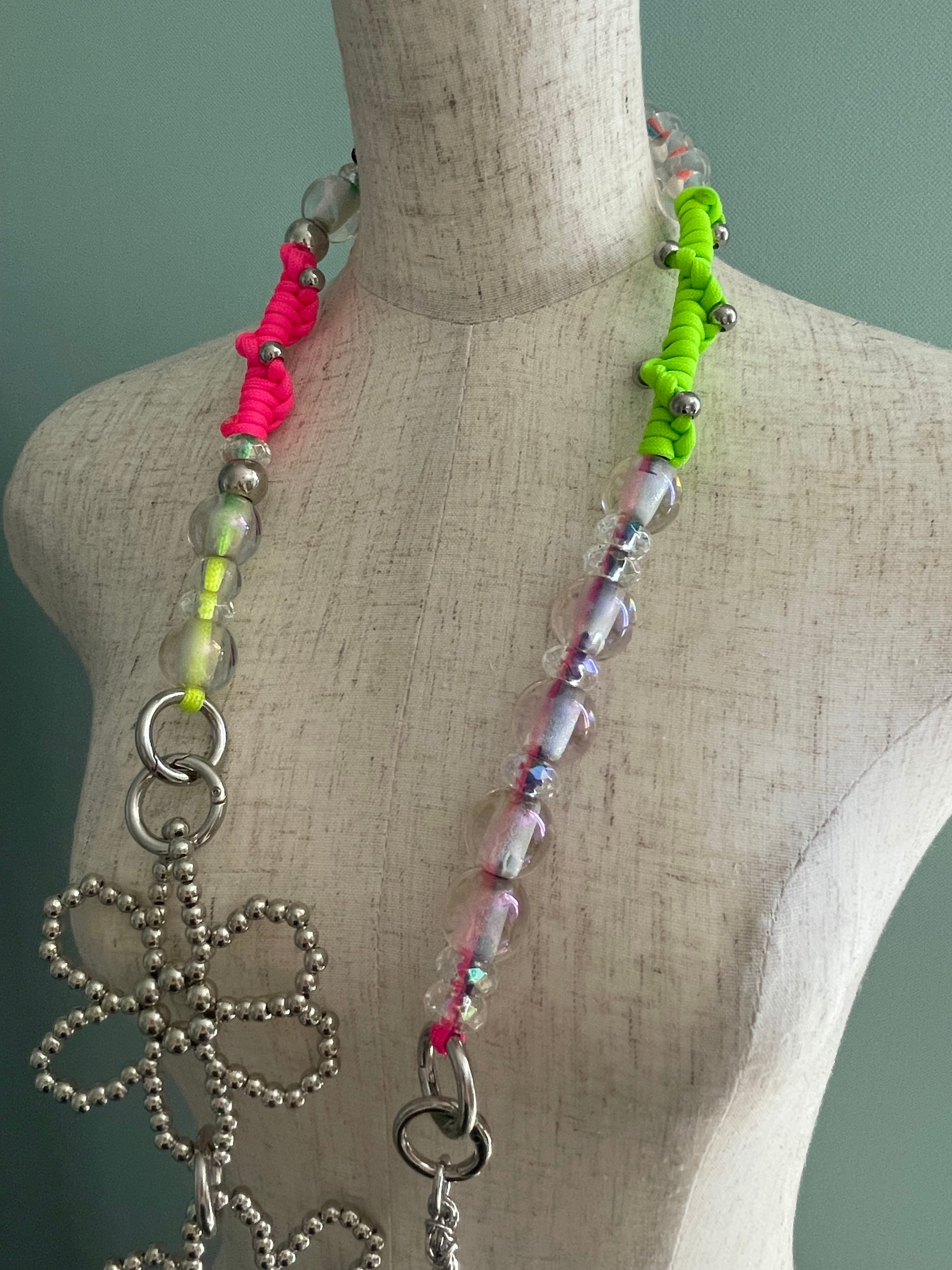お花のパーツ、大きなリングのカラビナは取り外し可能となっておりますので、長さが調整できます